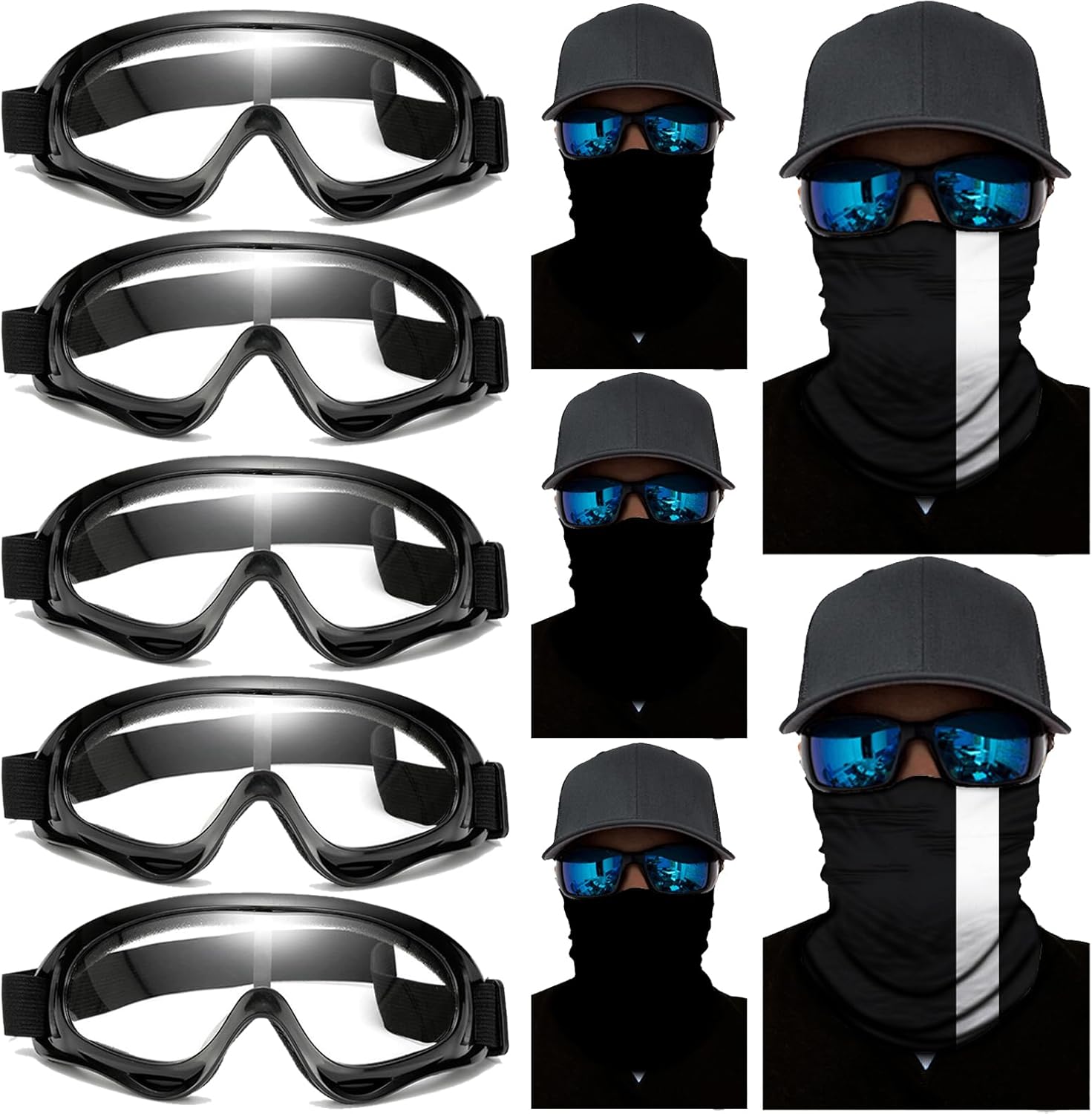 - Package Includes: Each 10 pack motorcycle accessories set includes 5 pack clear protective goggles and 5P comfortable face masks. Face mask includes 2 styles materials: ice silk materials or polyester materials, choose what you want from the size option.