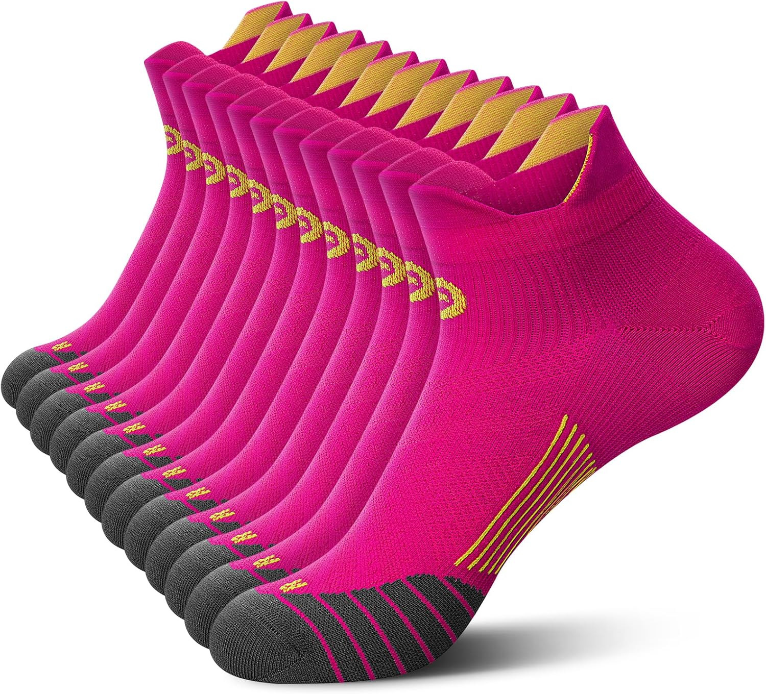- [360 PROTECTION FOR YOUR FEET] The no show compression socks with 3d circular progressive pressure design provide you with permanent all-around protection, ensure your feet at the right angle to reduce sports injuries while providing ankle support