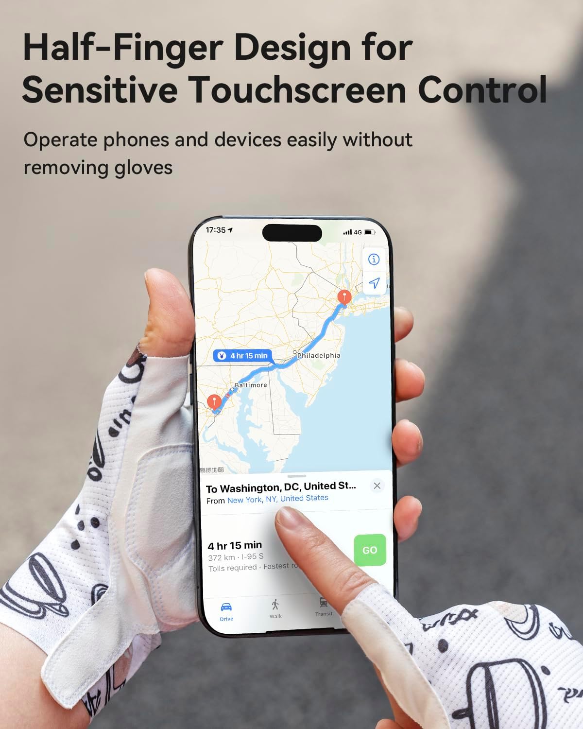 - Half-Finger Design: Effortlessly operate phones and devices without removing the biking gloves, while maintaining full tactile control.