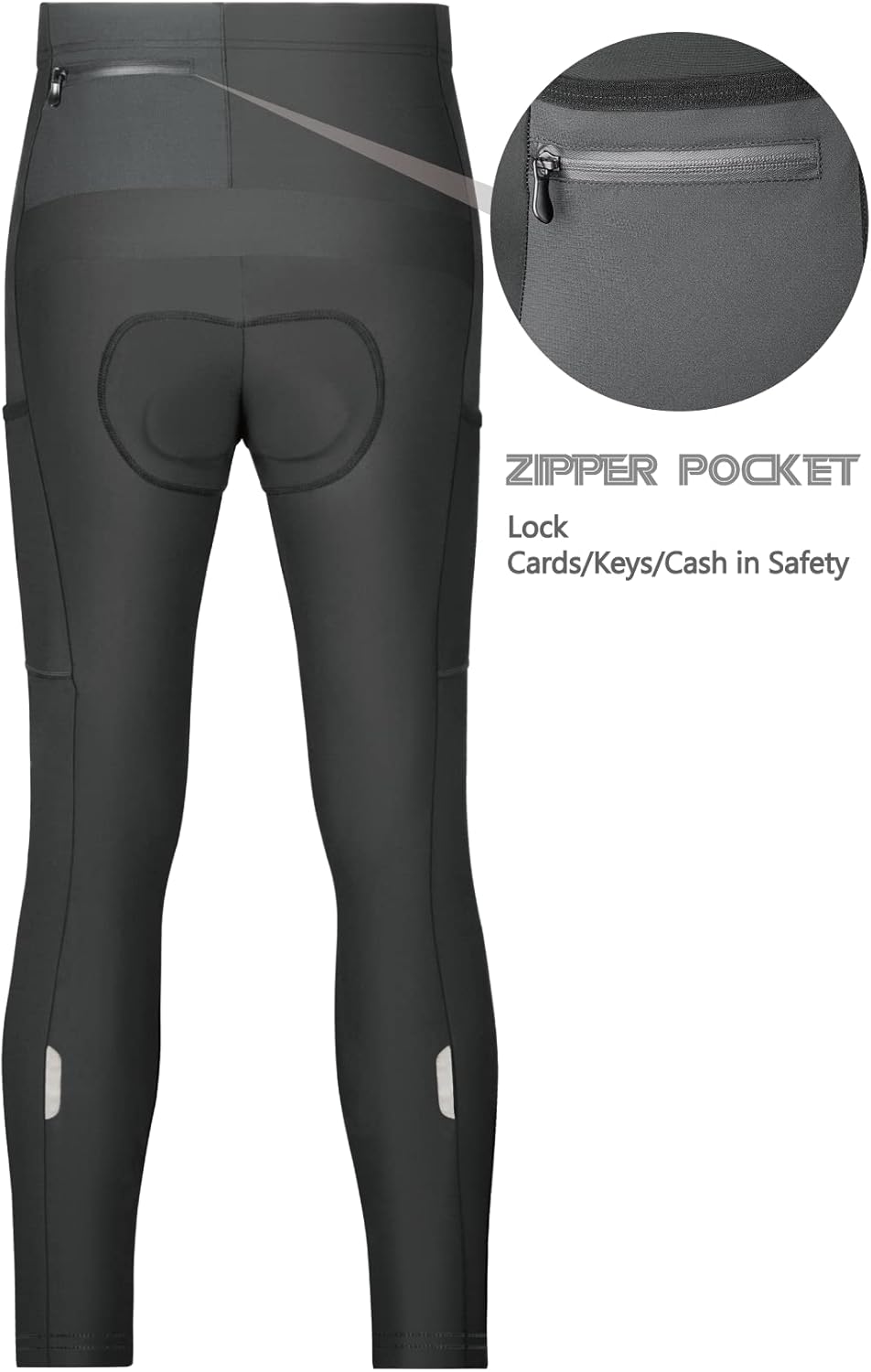 - Two handy cargo pockets for phone,face cover and neck warmer etc on each side of the cycling tights. Two more rear pockets for spare battery, energy gel etc. One zipper pocket for important belonging like cards and keys. Extral Streamlined cut, solid flatlock stitching and reflective tapes featured.